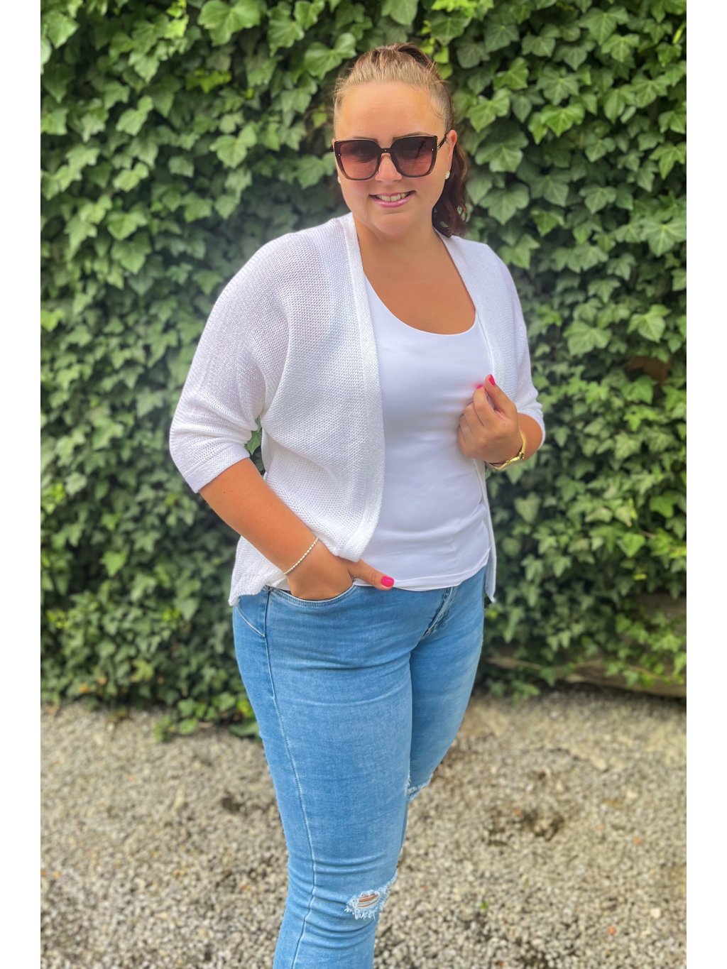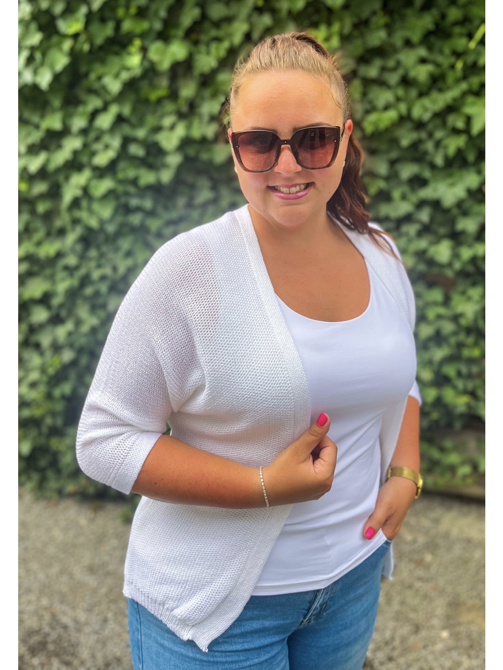 Dámsky háčkovaný kardigán v UNI veľkosti.