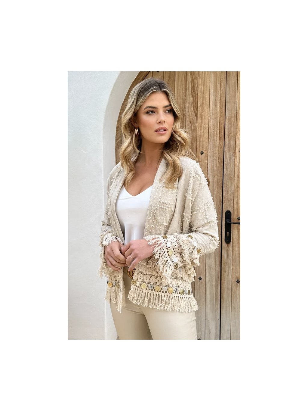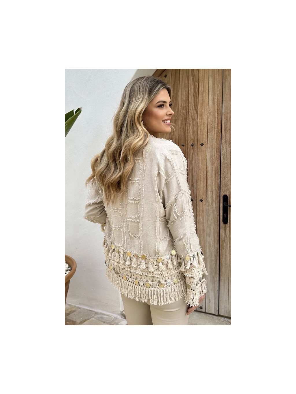 Dámske boho sako STELLE vyrobené zo 100% bavlny. Sako je doplnené strapcami a peniažtekmi, vďaka čomu pôsobí originálne a štýlovo. Je ideálnym kúskom pre ženy, ktoré sa neboja vyniknúť a do outfitu chcú vniesť kúsok boho elegancie. Perfektne sa hodí k rifliam, šatám aj jednoduchému topu – ozvláštni aj ten najjednoduchší look.