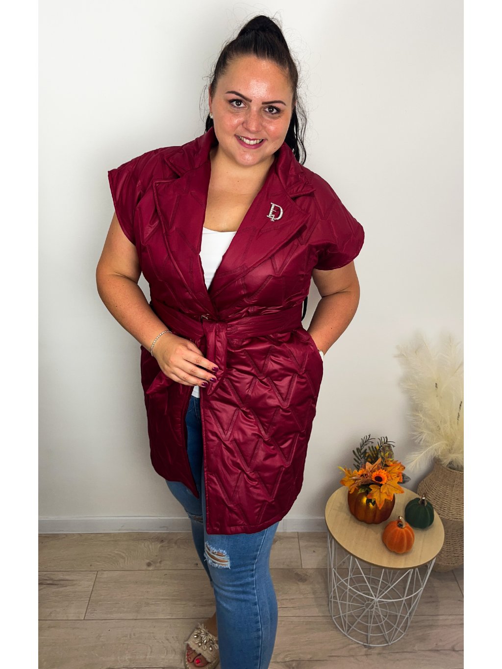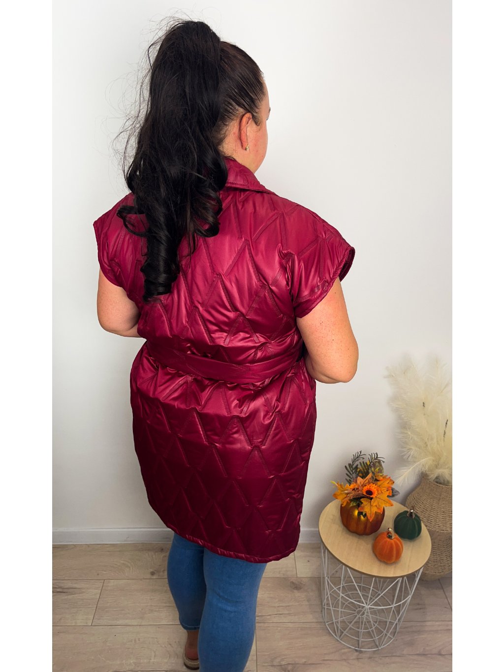 Dámska prechodná prešívaná vesta so zapínaním na gombík a s opaskom.