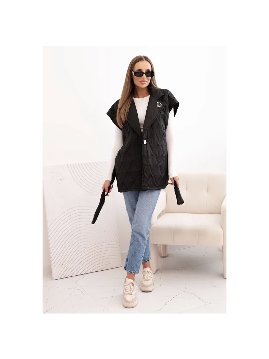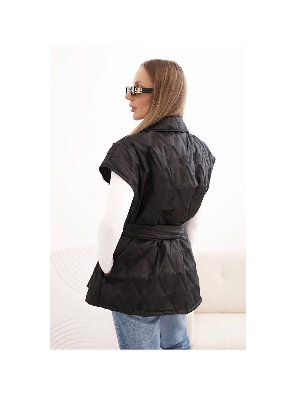 Dámska prechodná prešívaná vesta so zapínaním na gombík a s opaskom.