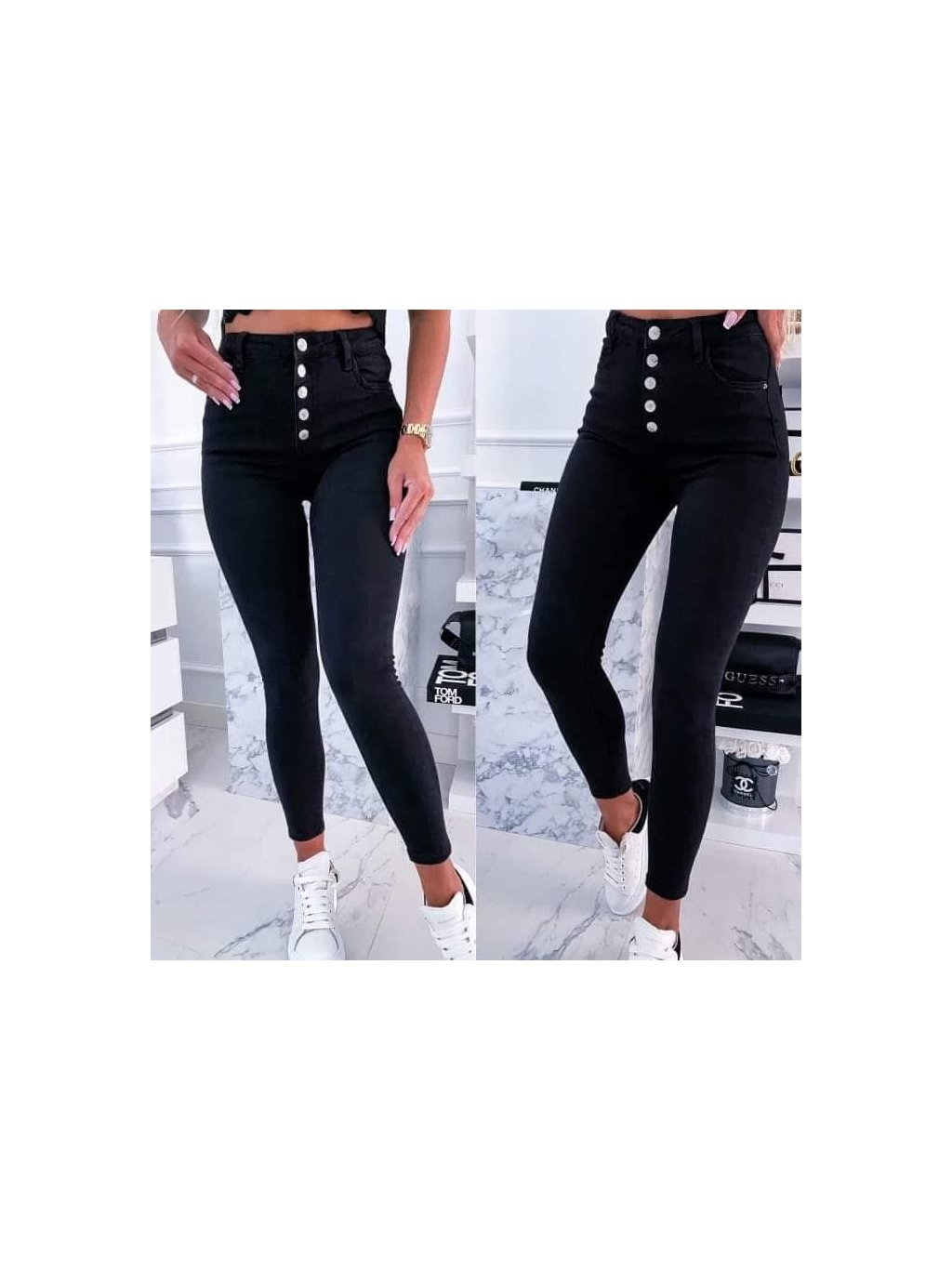 Dámske elastické džínsy s vysokým pásom a so zapínaním na gombíky.
