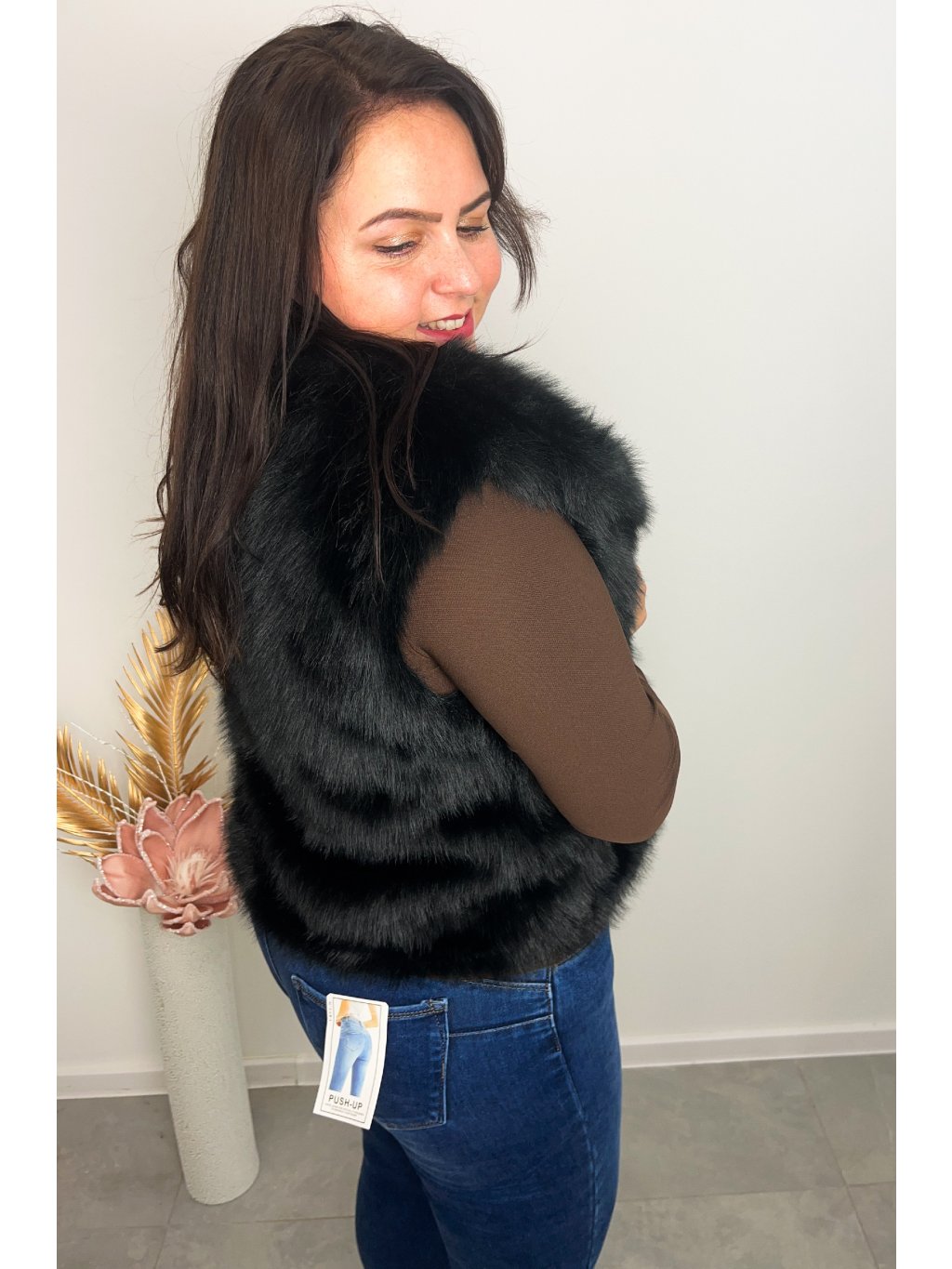 Elegantná vesta z kvalitnej umelej kožušiny, ktorá pôsobí luxusne a dokonale tvorí outfit.