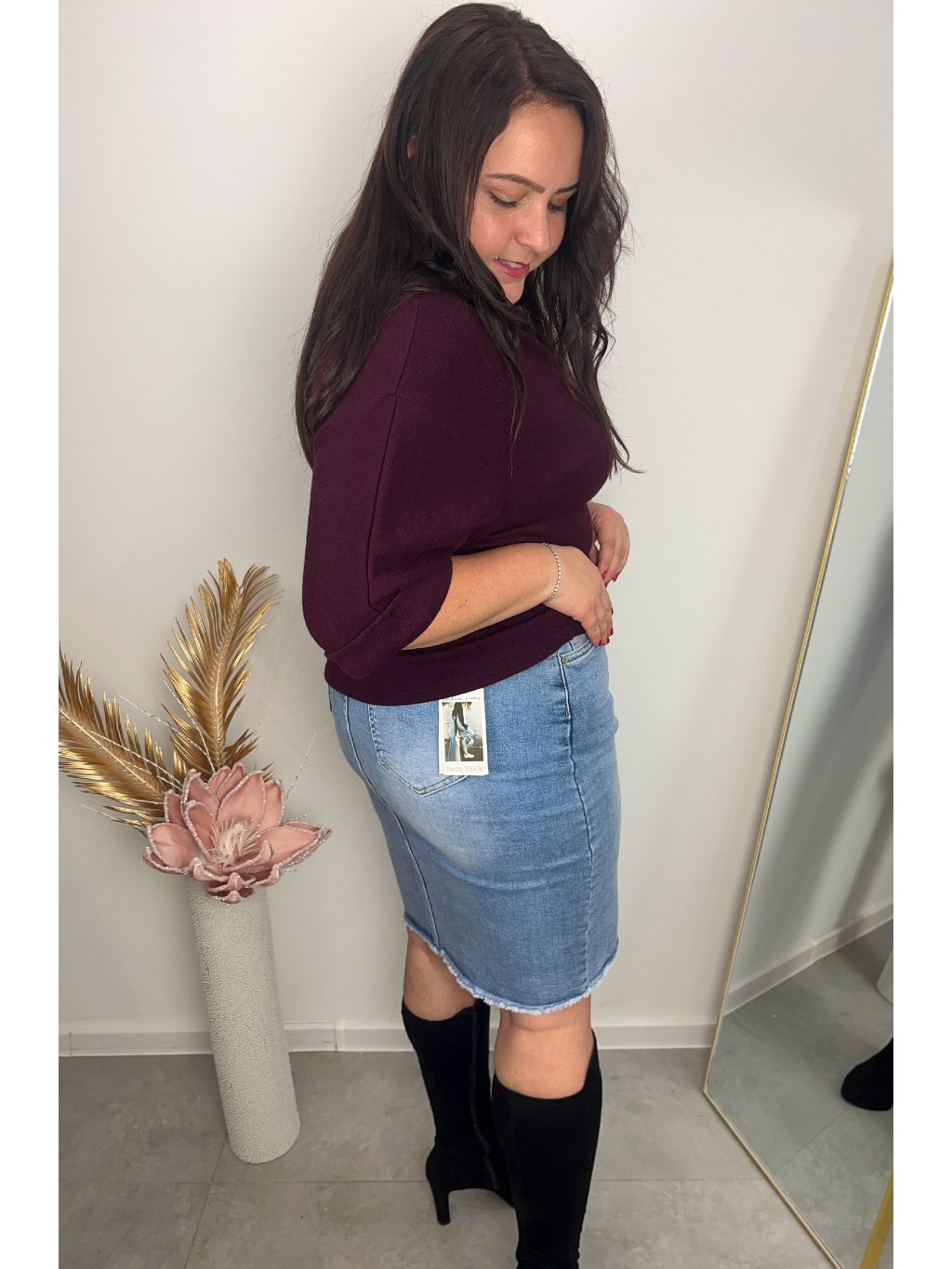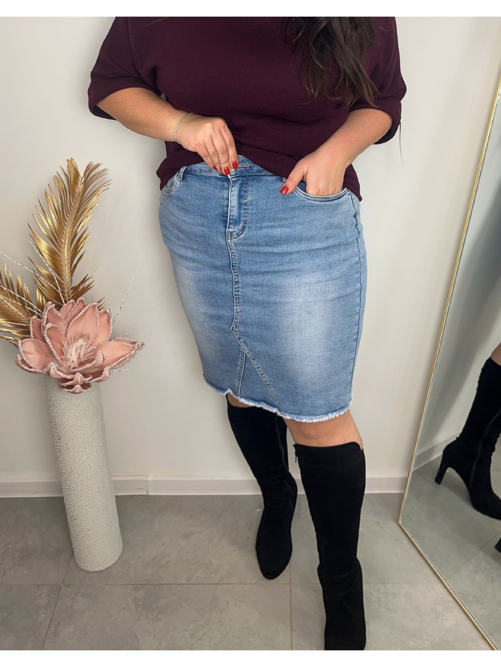 Rifľová sukňa v priliehavom strihu, ktorá skvelo sadne na postavu. Má elastický materiál, praktické vrecká a spodný lem s jemným strapkaním pre moderný look.