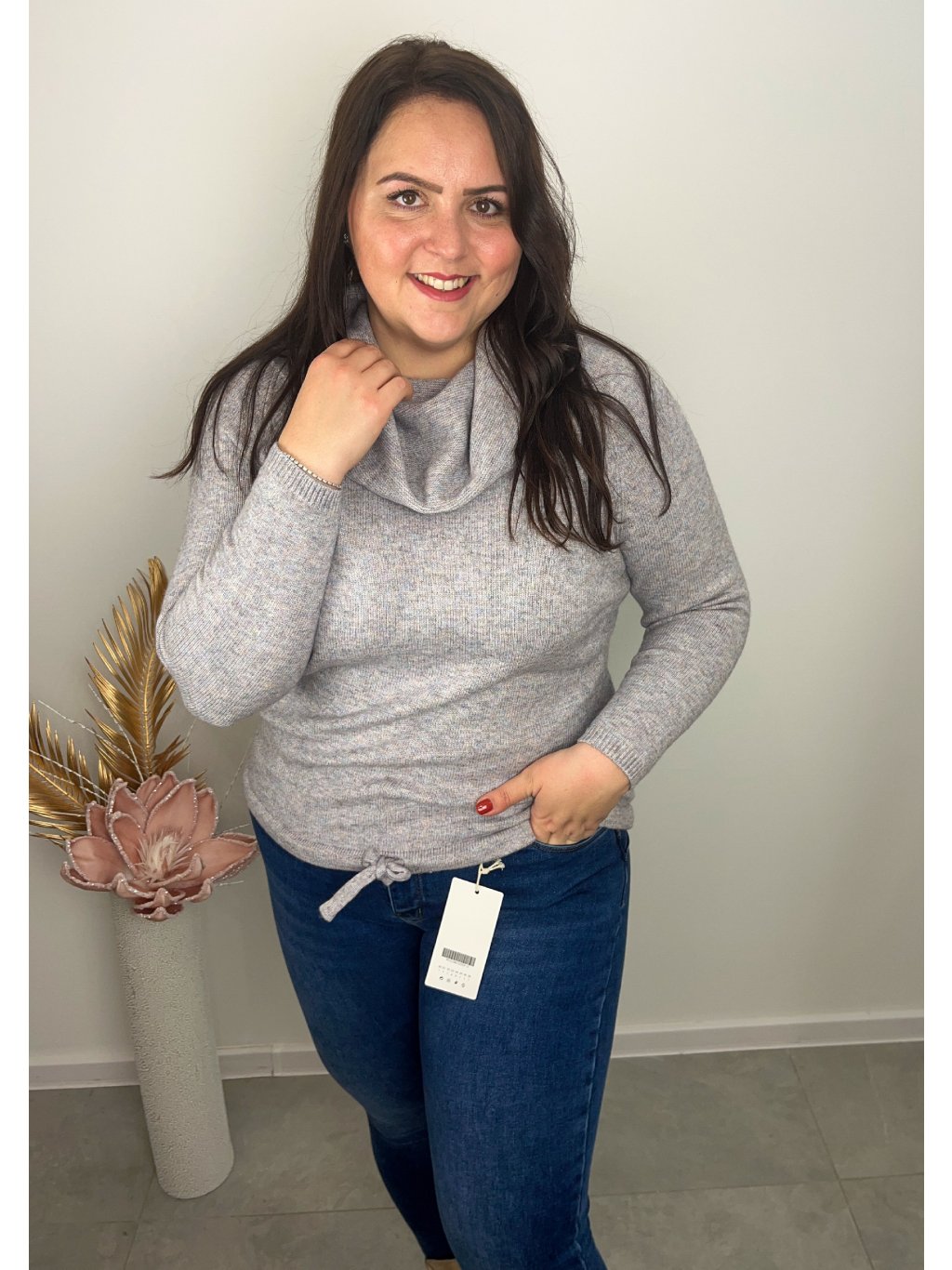 Jemný svetrík s voľným golierom, ktorý pôsobí žensky a štýlovo. Spodnú časť si môžete stiahnuť šnúrkou pre ideálne prispôsobenie postave.