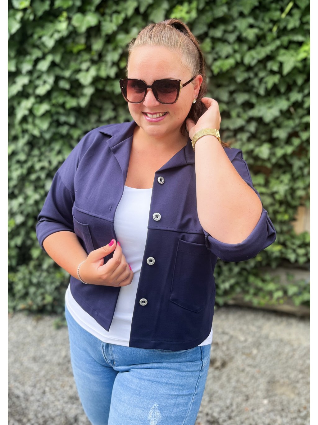 Kvalitný blejzer s gombíkmi a vreckami, nie je podšitý.